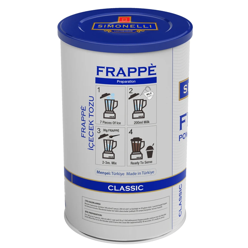 - فرمولاسیون پودری با قابلیت حلشوندگی سریع باعث میشود با ترکیب در شیر یا آب سرد و اضافه کردن یخ، بافتی خامهای و فومی مطلوب به دست آید. بستهبندی قوطی فلزی ضمن محافظت از عطر و طعم قهوه، ماندگاری بهتری نسبت به بستههای معمولی فراهم میکند و استفاده و نگهداری را آسانتر میسازد.