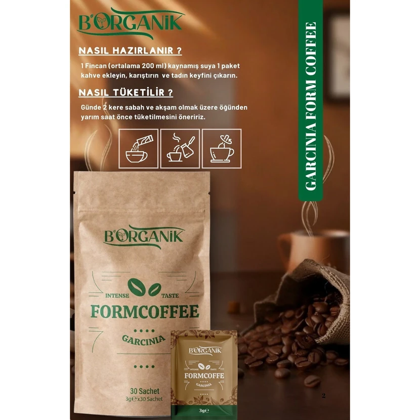 - قهوه فرم بیاورگانیک با عصاره گارسینیا ترکیبی گیاهی و مناسب برای حمایت از برنامههای کنترل وزن و افزایش انرژی روزانه است.