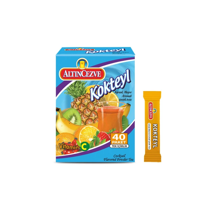 - پودر نوشیدنی تکنفره با طعم کوکتل، شامل 40 ساشه 1.5 گرمی برای تهیه سریع یک نوشیدنی خوشطعم؛ مناسب برای مهمانیها، محل کار و سفر.