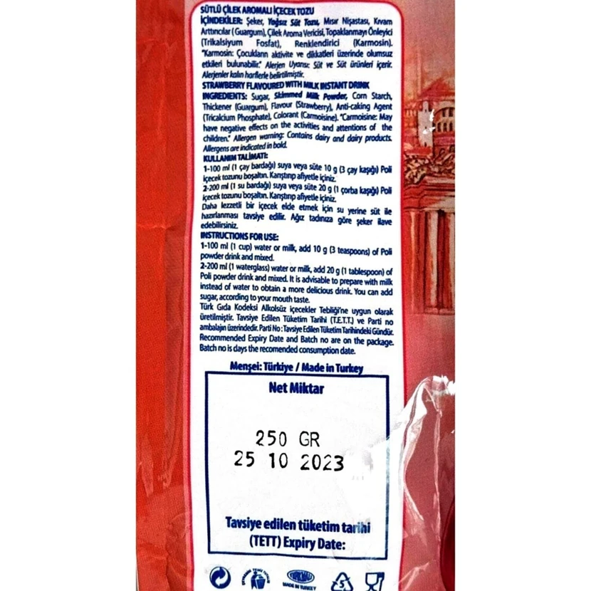 پودر نوشیدنی شیری با طعم توت‌فرنگی پولی ۲۵۰ گرم