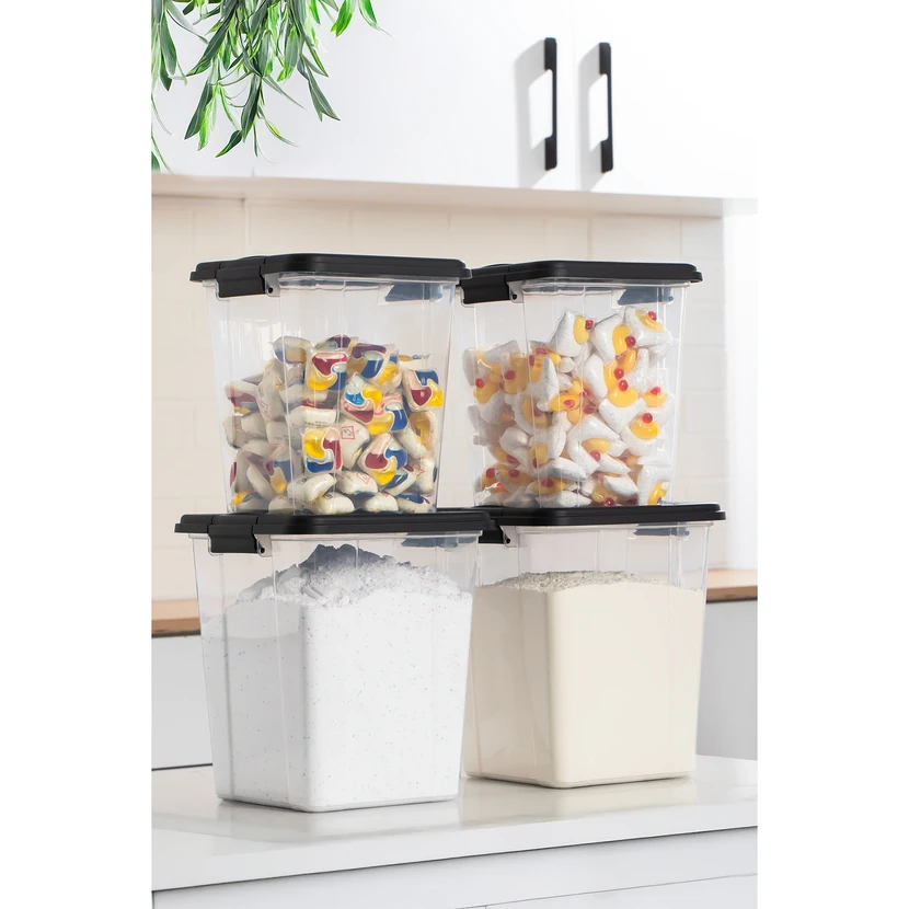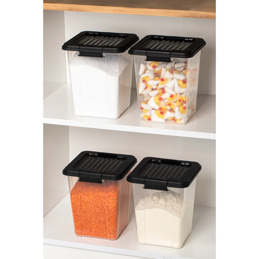 - ست 4 عددی ظروف نگهداری پورسیما، هر ظرف 5 لیتر، مناسب برای نگهداری مواد خشک مانند پودرها و خشکبار با طراحی هواگیر برای حفظ تازگی.
