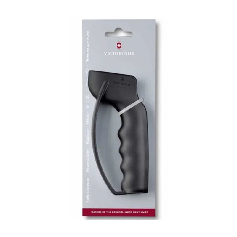 چاقو را روی یک سطح صاف به پشت بگذارید و دسته را محکم فشار دهید. سنگ های الماسی به صورت مورب در داخل ابزار تراش وجود دارد. آن را بدون فشار زیاد از پایین چاقو به سمت نوک نوک تیز به سمت خود بکشید. بعد از 4-5 بار انجام این حرکت تا رسیدن به بهترین تیزی، چاقوی خود را با احتیاط زیر آب تمیز کنید، همین!