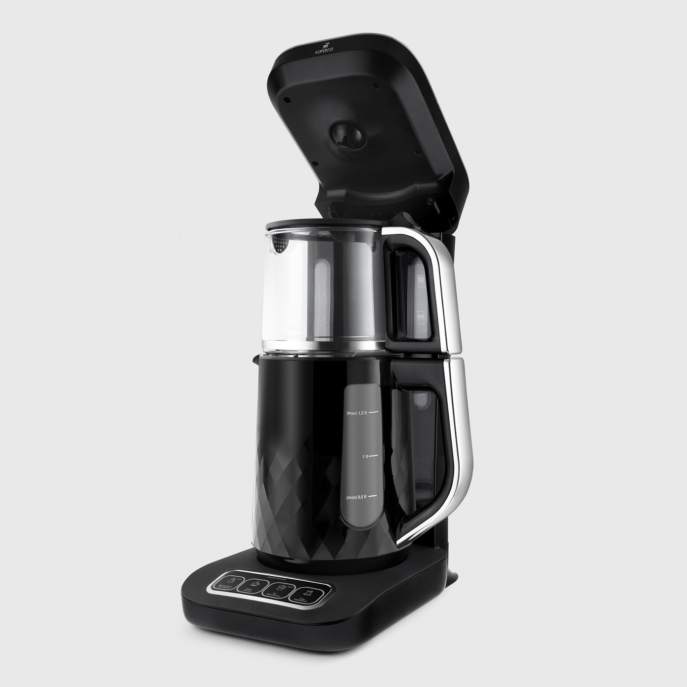 Karaca Çaysever Robotea Pro Quartz 4 in 1 Konuşan Otomatik Çay Makinesi Su Isıtıcı ve Filtre Kahve Demleme Makinesi 2500W Black Chrome