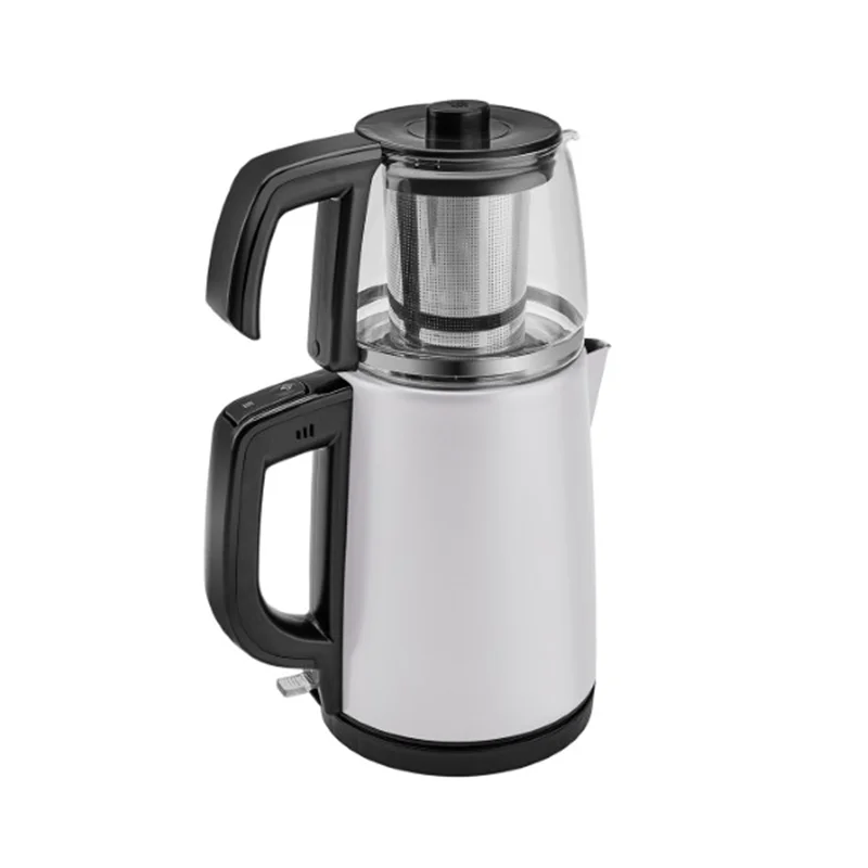 Karaca Tea Glass 2 in 1 Çelik Çay Makinesi ve Kettle White
