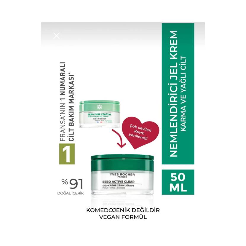 Yves Rocher Karma Ve Yağlı Ciltler Için Sebo Vegetal Jel Krem - Çinko & Salisilik Asit-50 ml