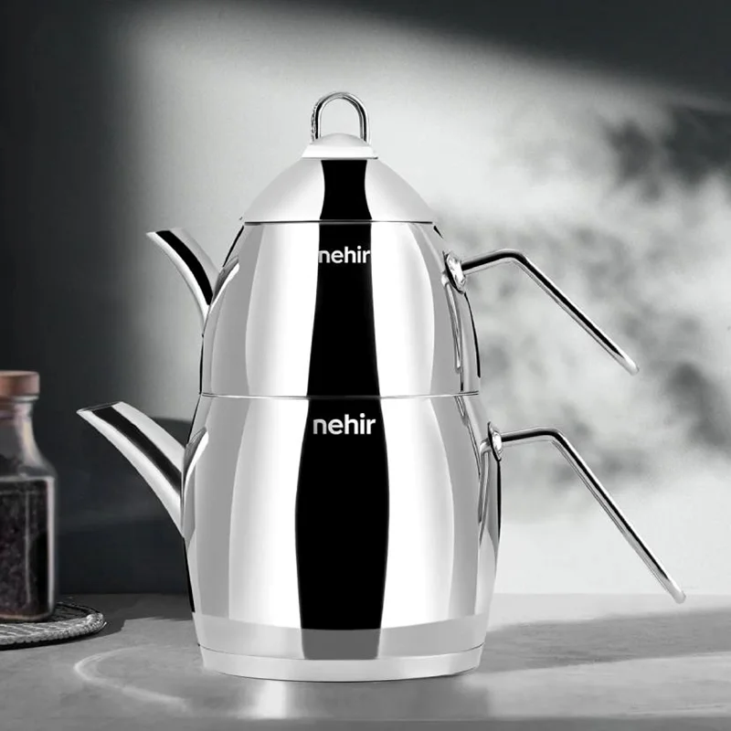 Nehir Florina Midi Orta Boy Paslanmaz Çelik 1.00-1.50 Lt. Çaydanlık Takımı