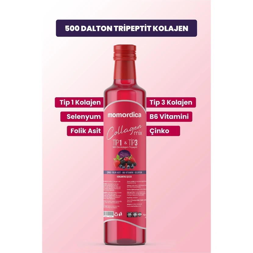 - کلاژن میکس تریپپتید ۵۰۰ دالتون موموردیکا با ترکیب کلاژن تیپ ۱ و ۳ و همراهی سلنیوم، اسید فولیک، روی و ویتامین ب۶، راهکاری کارآمد برای پشتیبانی روزانه از زیبایی و تندرستی است. فرمول تریپپتید ۵۰۰ دالتون به جذب مؤثر کمک کرده و استفاده مداوم آن میتواند به بهبود کیفیت پوست، مو و ناخن و همچنین مراقبت از بافتهای همبند کمک کند.
