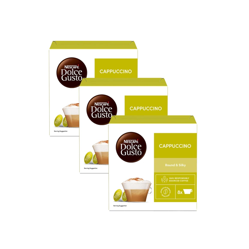 - نسکافه دولچه گوستو کاپوچینو 48 کپسولی؛ طعمی کرمی و کفدار، مناسب دستگاه دولچه گوستو. کیفیت بالا، آمادهسازی سریع، ایدهآل برای خانه و محل کار. هنگام خرید به تاریخ مصرف و بستهبندی توجه کنید.