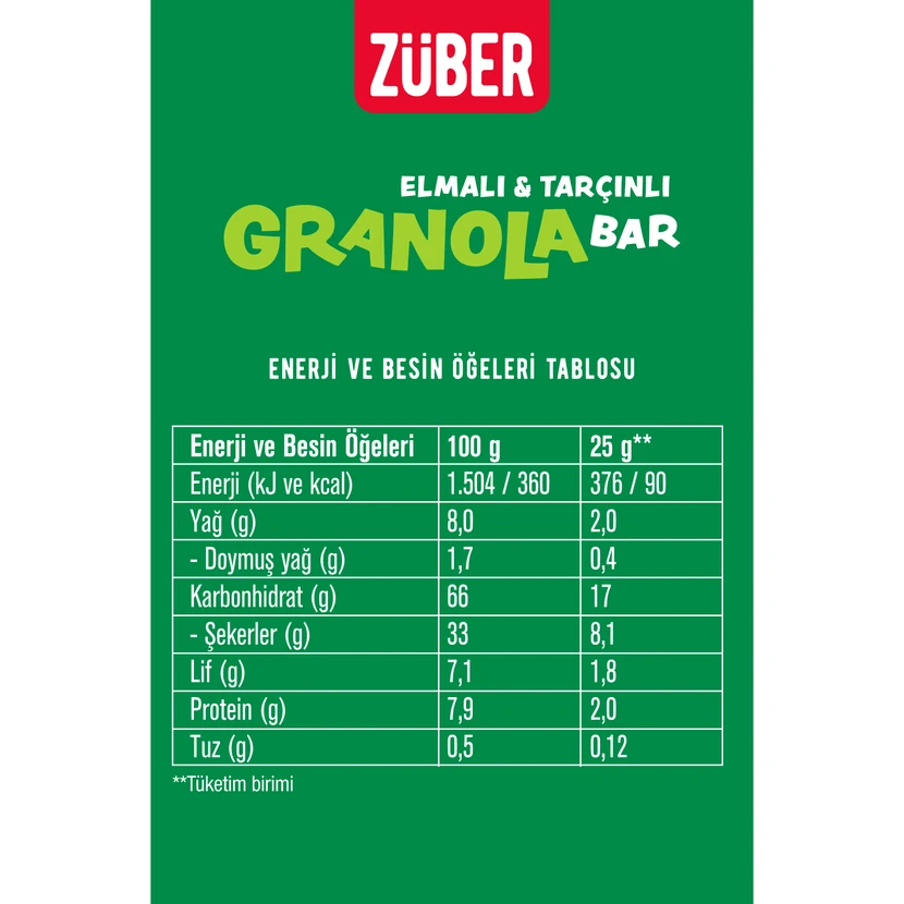 - گرانولا بار سیب و دارچین زوبر؛ میانوعدهای خوشطعم برای روزهای پرمشغله. بسته ۶ عددی ۲۵ گرمی؛ مناسب محل کار، ورزش و سفر، با طعم دلپذیر و بافت ترد برای انرژی سریع.