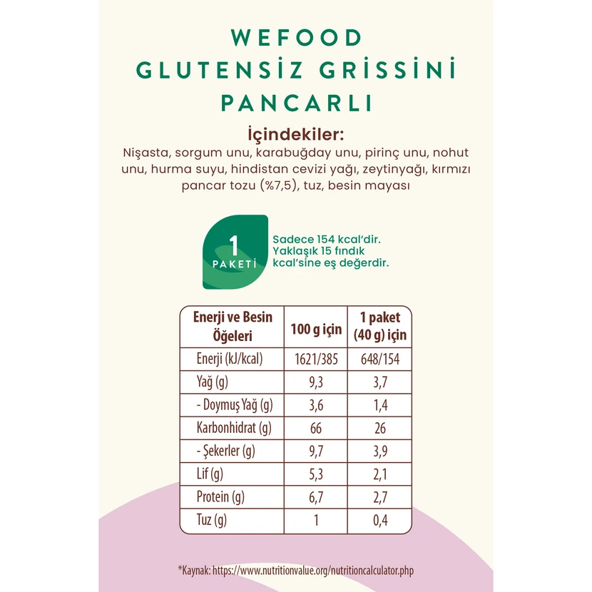 - گریسینی بدون گلوتن با طعم چغندر وی فود، یک میانوعده خوشمزه و سبک برای افرادی است که به دنبال انتخابی سالم و مناسب رژیم بدون گلوتن هستند. این محصول با استفاده از مواد اولیه باکیفیت تولید شده و با رنگ و طعم طبیعی چغندر، تجربهای متفاوت و دلپذیر از گرسینی ارائه میدهد.